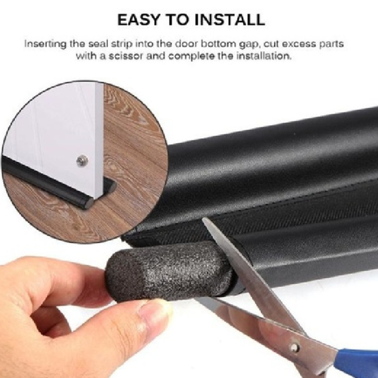 ��Installation GuideSimply insert the flexible black EVA foam strip into the door bottom gap—no tools or adhesives needed—and trim excess with scissors for a perfect 98 cm fit.
