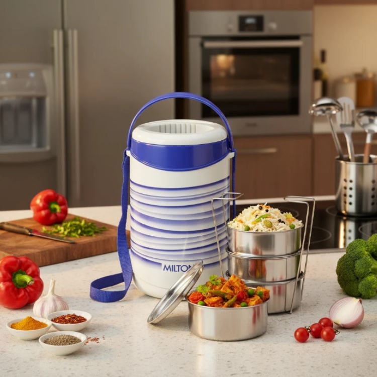 – Stylish and practical tiffin box for carrying home-cooked meals to the office