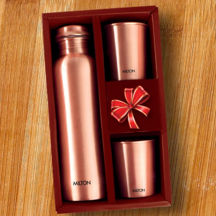 Package Contents: 3 – Pieces Copperas Gift Set (1 Pc Copperas Bottle 950 ml, 2 Pc Tumbler 280 ml each)