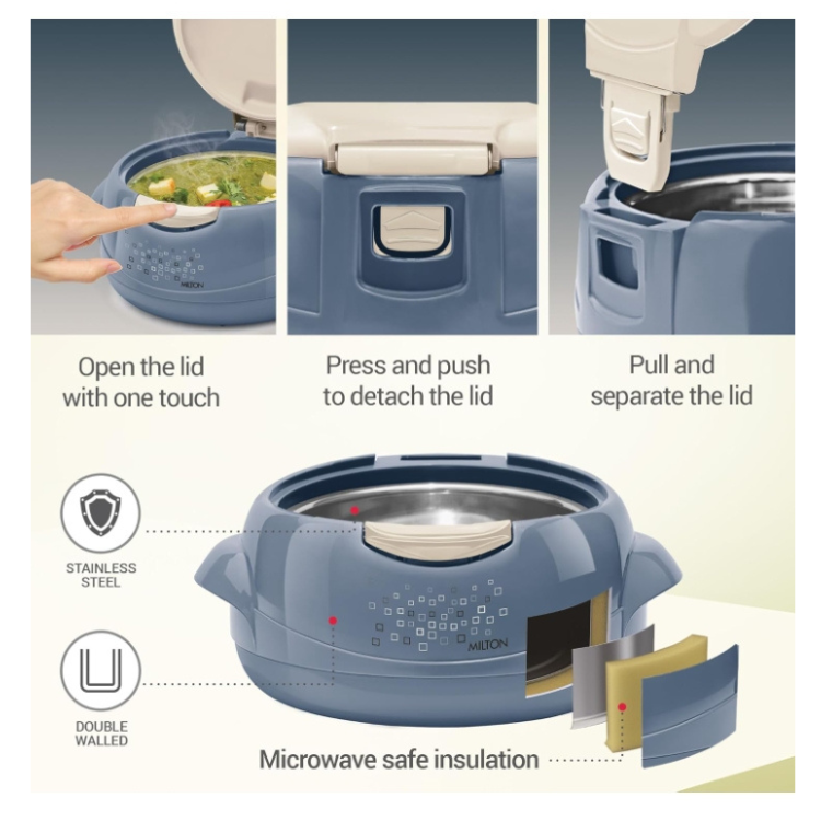 The perfect serving casserole for any special occasions or household like birthday or anniversary parties, holiday, picnic will keep your Soup, Salads, chapati, Roti or any beverages hot and fresh for long hours. Microwave safe insulated casserole. One touch opening system enhance the look of your dining table with its exclusive shape and design. Detachable Lid for easy cleaning.
