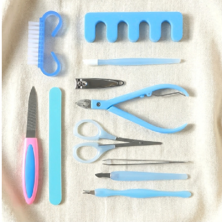 Complete 10-Piece Toolkit: Includes essential tools such as nail clippers, scissors, tweezers, a nail file, a cuticle nipper, a cleaning brush, and a toe separator.