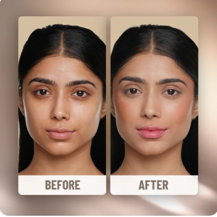 Blend: Gently blend using your fingertips, a makeup brush, or a sponge for a soft, natural, and radiant finish.