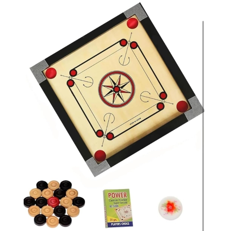 Crafted for durability and smooth gameplay, this official-size board suits homes in Narnaund and small Haryana towns.Plywood board with classic star center design and boundary lines for accurate play.Rubber-gripped corners and anti-slip base prevent movement during intense matches.Complete kit: Wooden coins, striker, Power cards (24 pieces), ready for immediate fun.Ideal ForPerfect for family gatherings, kids’ play, or casual tournaments—enhances skills like precision and strategy.